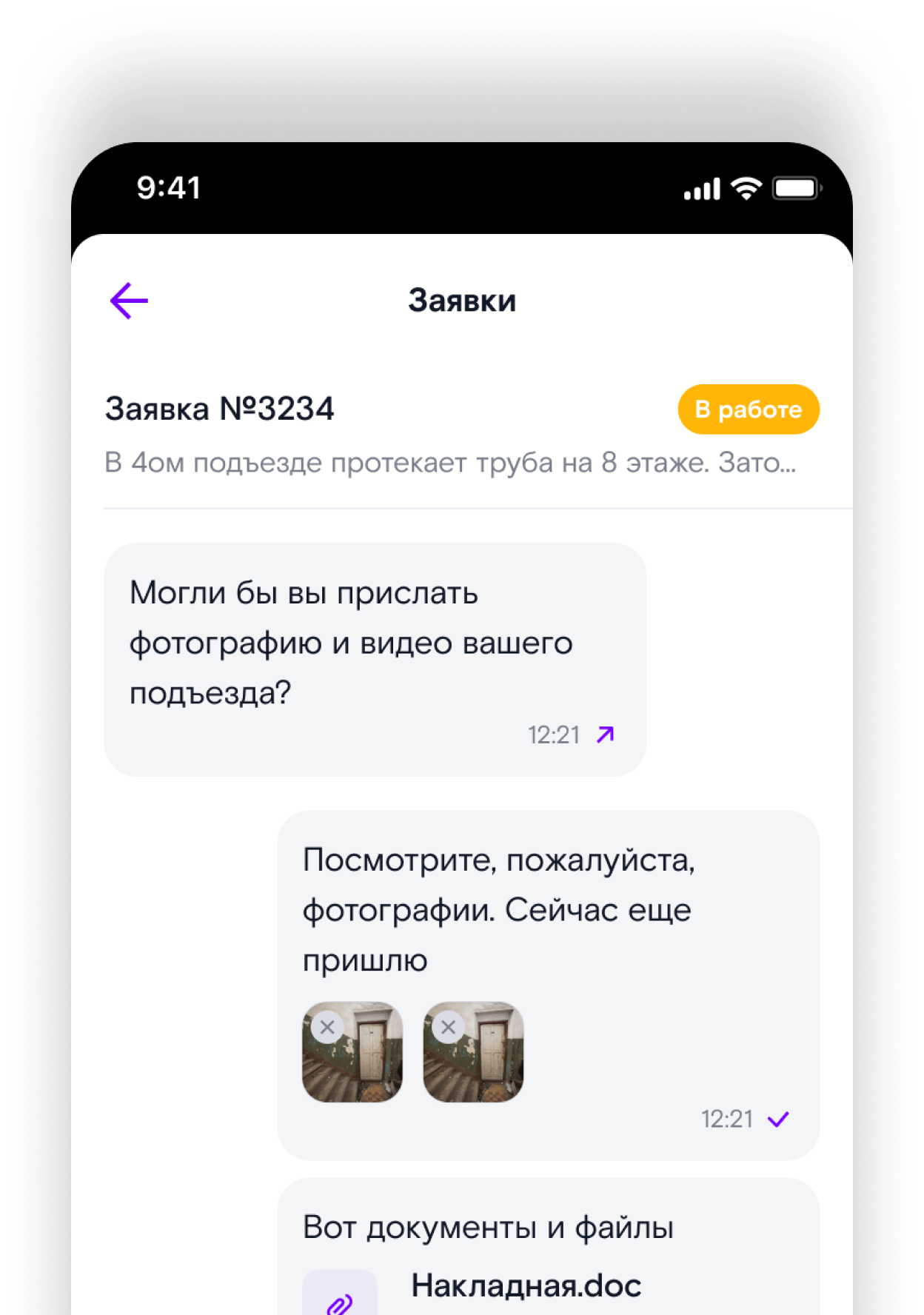 Опишите проблему, приложите фото или видео и отправьте заявку в УК. Следите за ходом ее выполнения, общайтесь с УК в чате и оценивайте закрытые обращения.